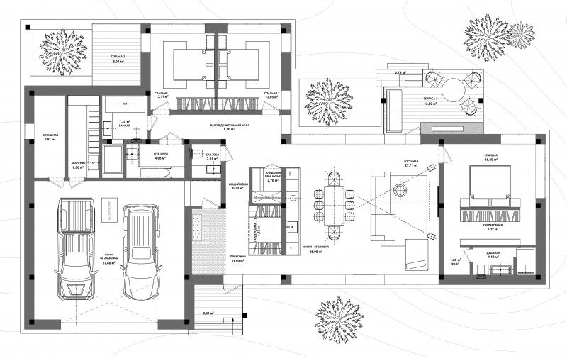 Мы готовы адаптировать проект дома и его расположение под особенности вашего участка. Это может включать: