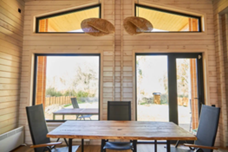 Дом Белуха начинается с просторной входной зоны, соединенной с гостиной большим окном-порталом, через которую гостиная наполняется светом. Из прихожей мы попадаем в большую кухню-гостиную, справа от которой расположены санузлы и гостевая спальня, а слева приватная зона с 4 спальнями. Из кухни-гостиной предусмотрен выход на огромную полуоткрытую террасу.