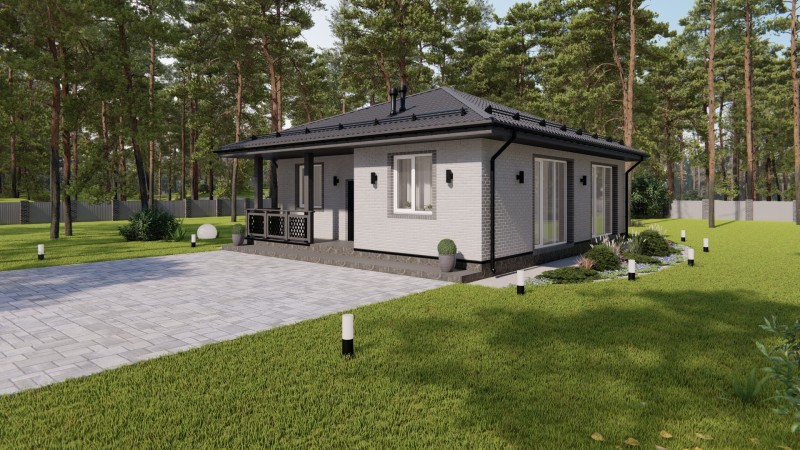 Благодаря использованию современных технологий и проверенных материалов, дом отличается высокой теплоизоляцией, долговечностью и эстетической привлекательностью. Просторная кухня-гостиная — сердце дома, где собирается вся семья, а три спальни обеспечивают комфорт и личное пространство для каждого члена семьи.