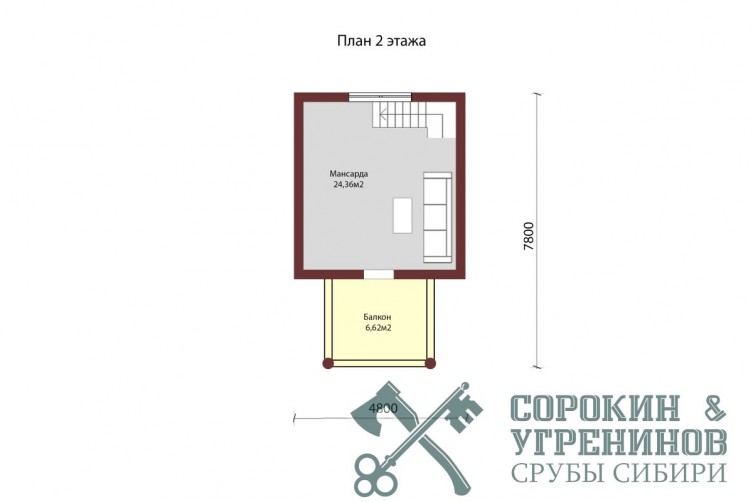Рубленая баня из лафета кедра, общей площадью 72,16м2, со вторым мансардным этажом. Размер сруба 6х7,8 метров по осям. Планировка бани, парная и мойка раздельные, комната отдыха, терраса на первом этаже. Лестница на второй этаж, где спальня с балконом. Сруб рубленый в норвежский замок. Объем лафета в срубе 50м3.